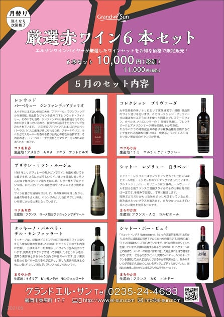 ※ワインセットは月替りとなります。内容が少し変更になる場合がございますのでご了承下さいませ。
