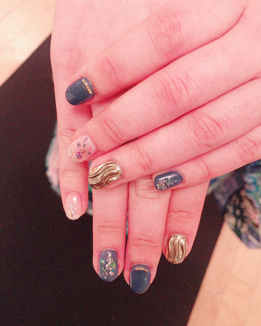 古典柄の青い振袖に合わせたネイルがとても可愛かったですよ![]()