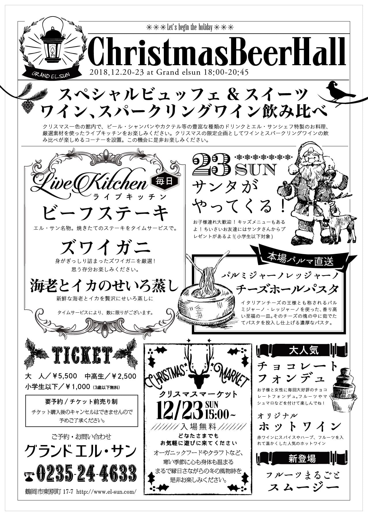 エルサン恒例の年末イベント【4日間限定のクリスマスビアホール】の日程が決まりました![]()