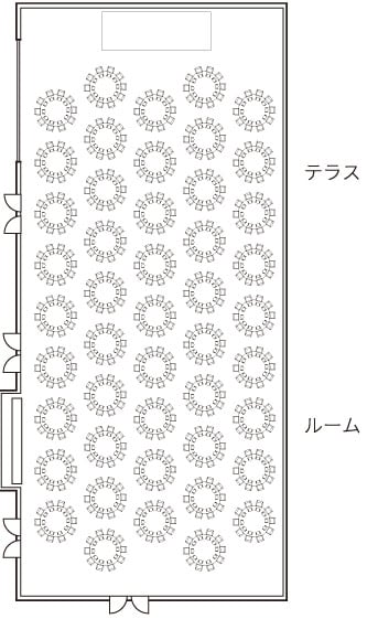 | ㎡ | 坪 | 正餐(円卓) | 立食 | スクール | シアター | |
