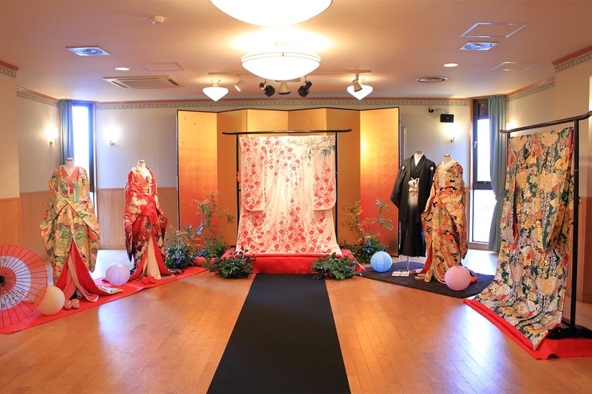 衣装室からは、ウェディングドレスと和装を展示させていただきました![]()