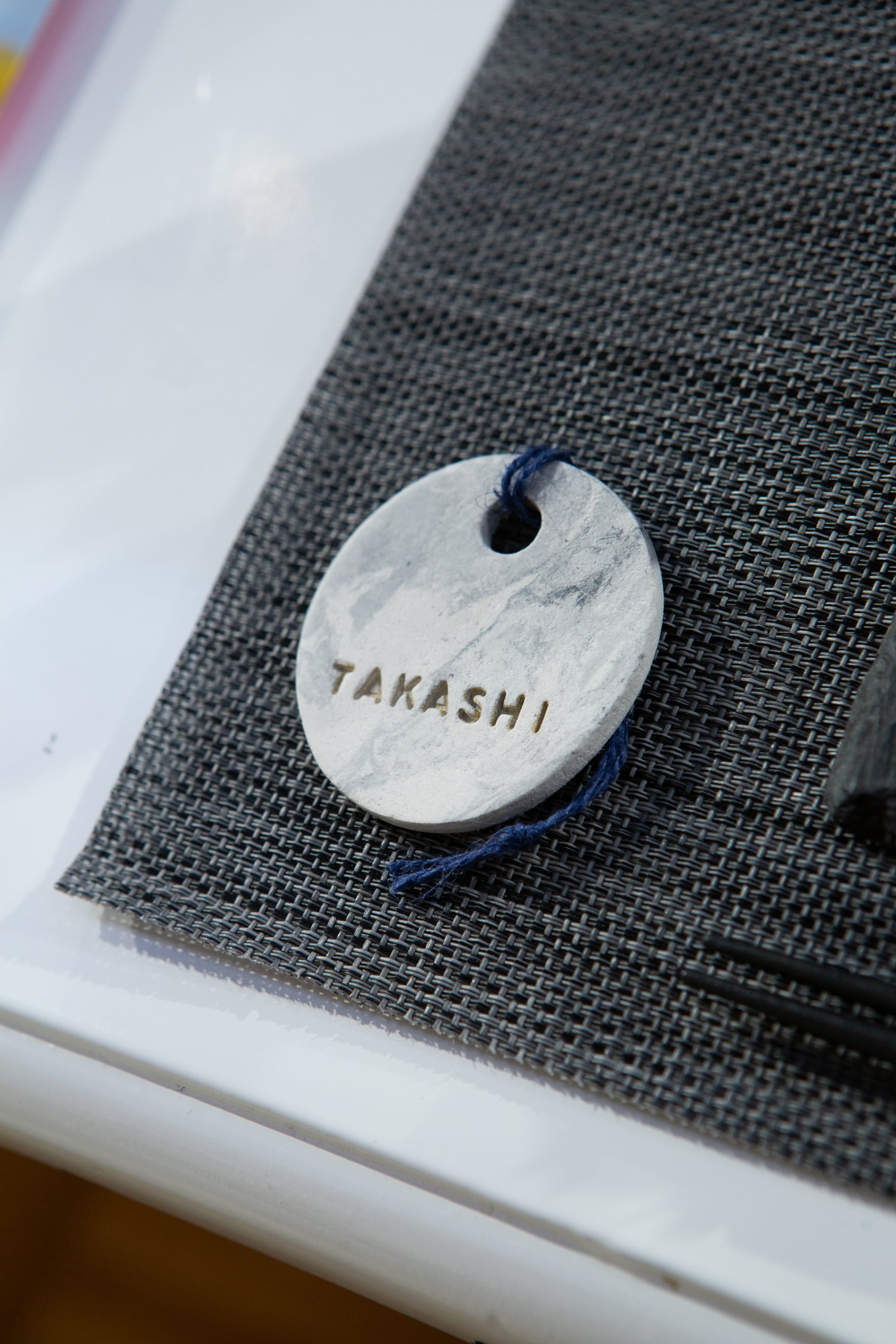 こちらは石粉粘土にひとつひとつ名前を掘って手づくりしたネームタグ![]()