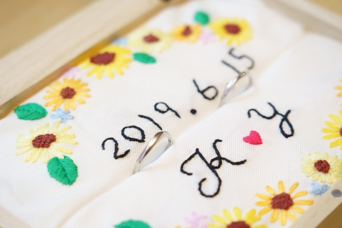 こちらの花嫁さんは刺繍で手づくりしたリングピローを用意しました![]()