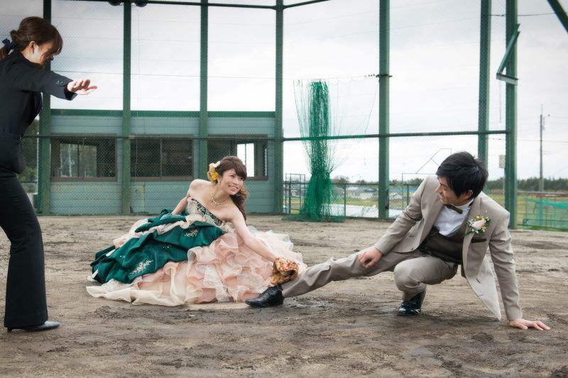 キャッチボールをしたり、スライディングをしたり楽しく前撮り撮影を行いましたよ![]()