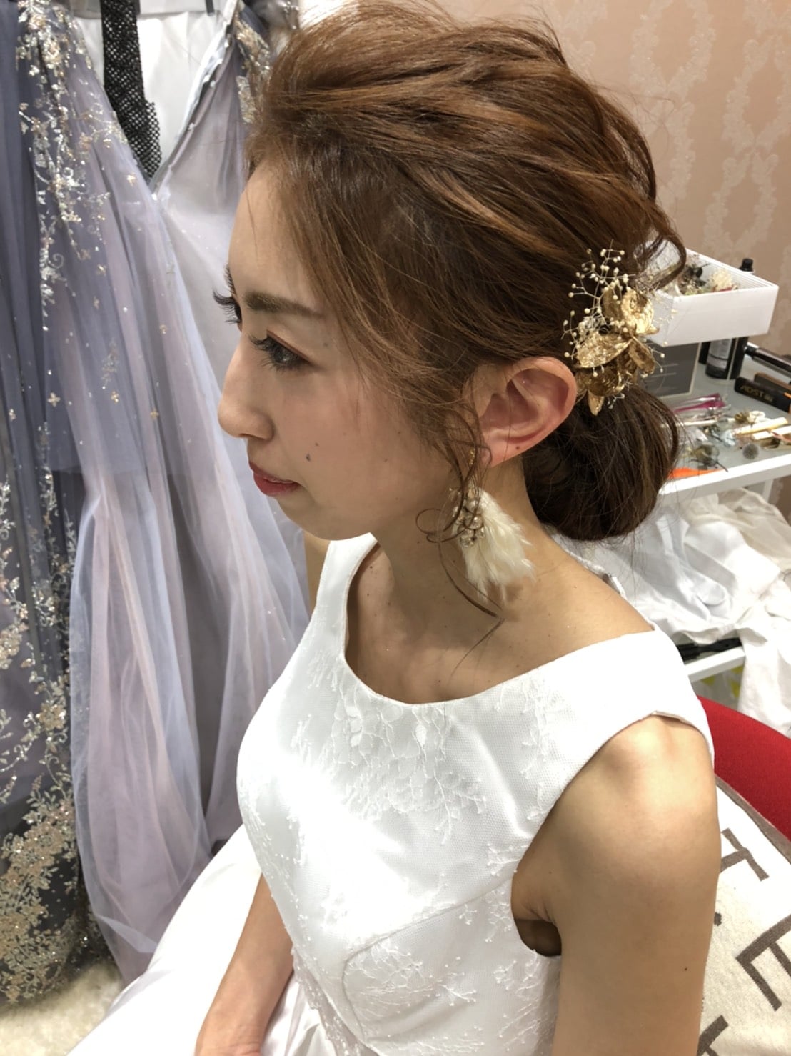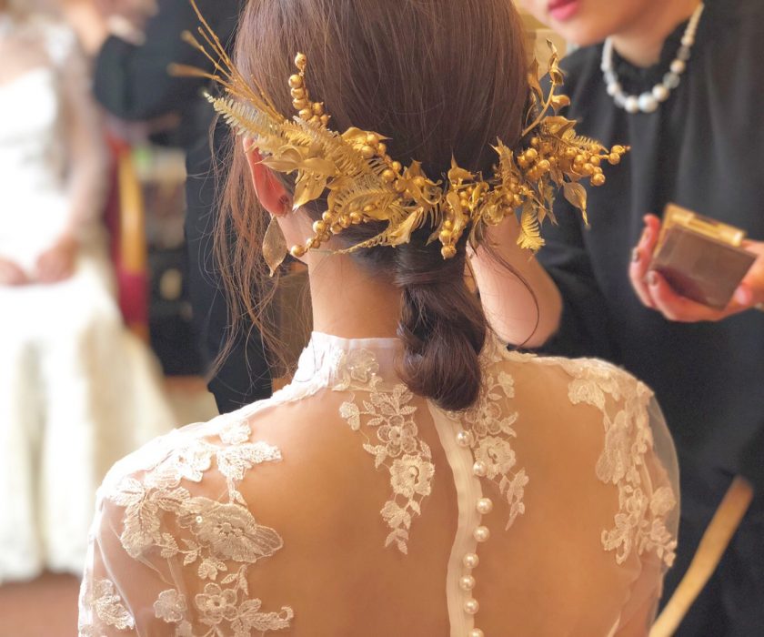 おしゃれ花嫁さんはウェディングドレスや和装にもゴールド小物を合わせる方も![]()