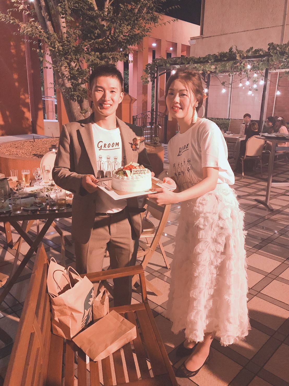 GROOMとBRIDEと書かれた真っ白なTシャツ![]()