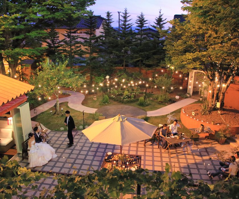 日が落ちて薄暗くなってからも、電球の明かりやキャンドルを灯して素敵な雰囲気に…![]()