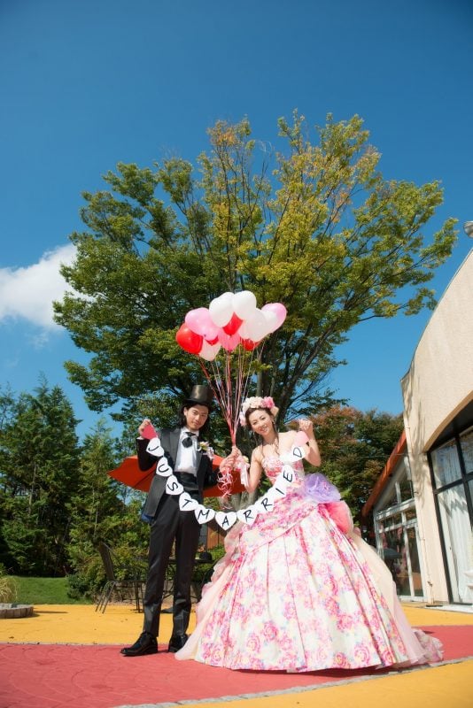 タグにゲストから願い事を書いていただき、風船にくくりつけてバルーンリリースを行いました![]()