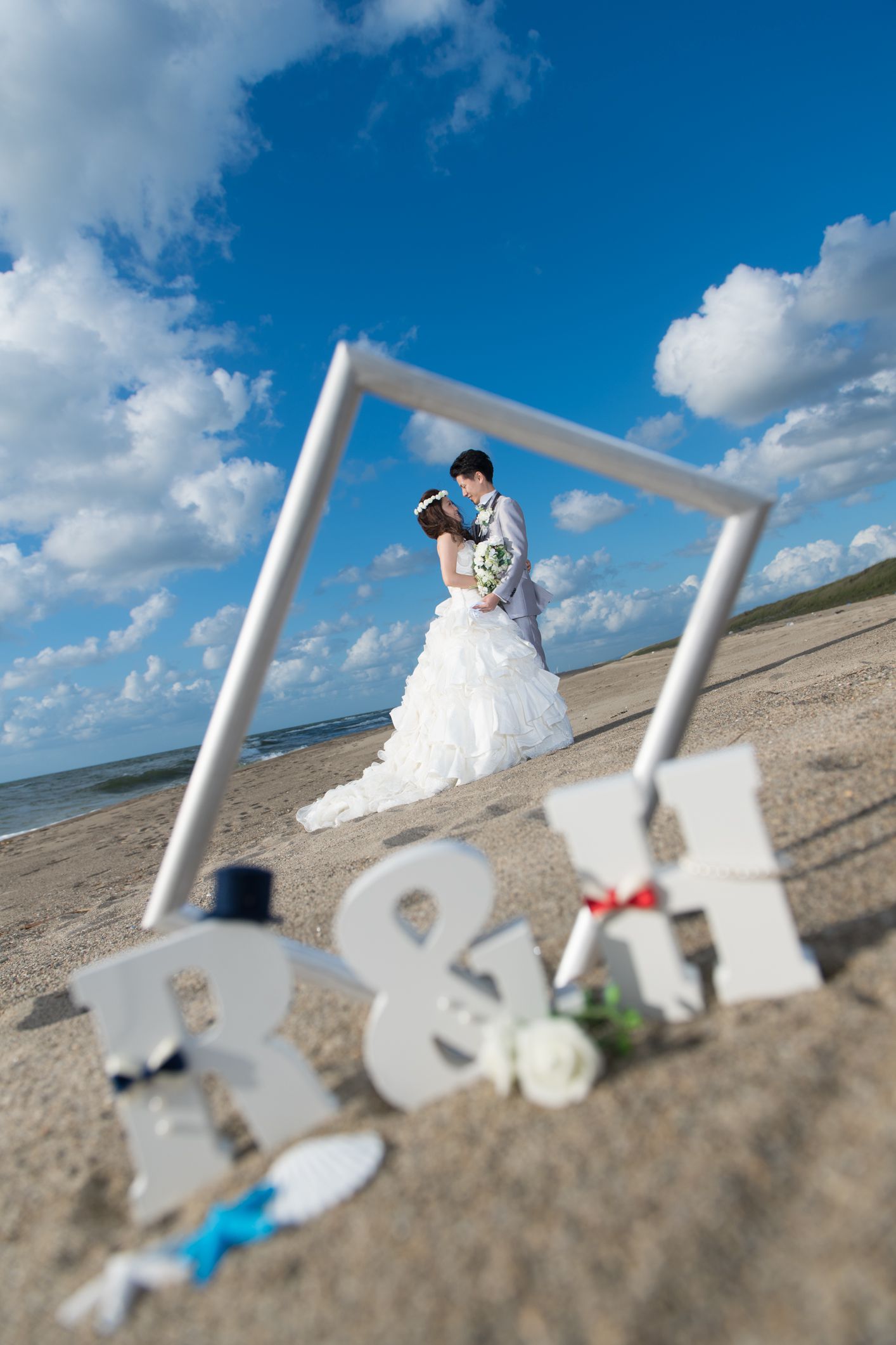 フレームを砂浜にななめにさすだけでこんなに可愛い写真枠ショットが撮れるんです![]()