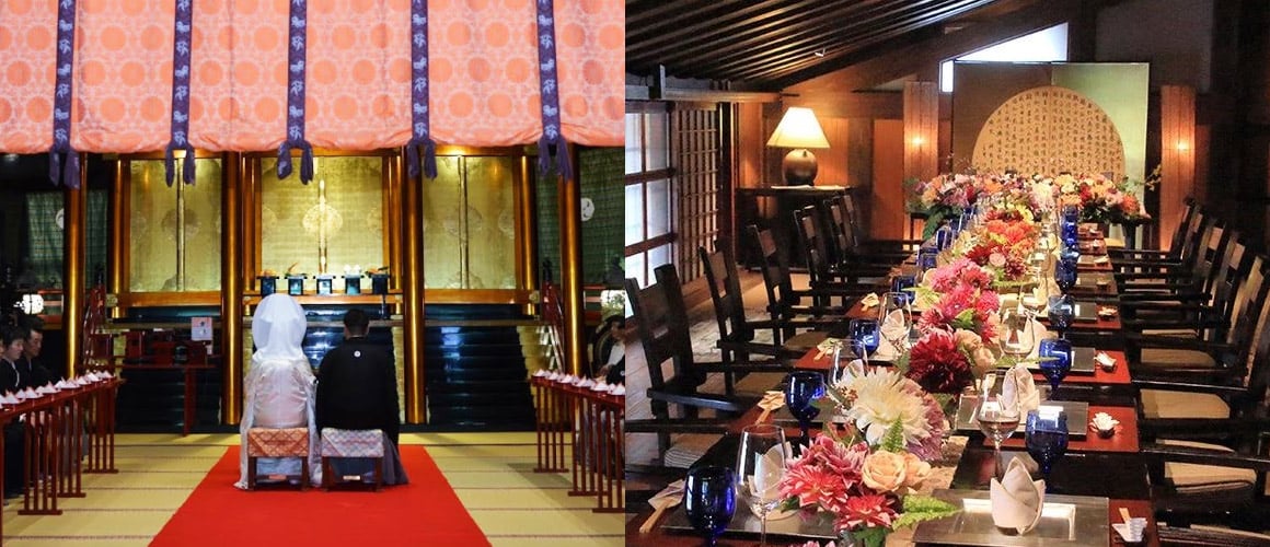 出羽三山神社での挙式と蔵屋敷ルナで食事会ができるプランです。